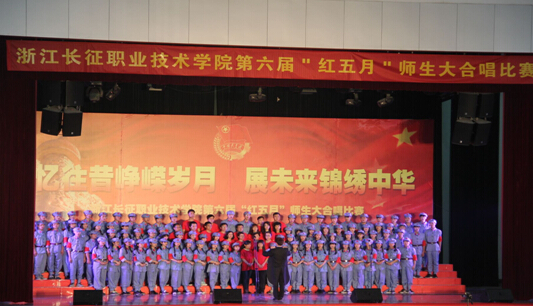 为了激发广大师生们的爱国热情,2015年5月6日由学院团委主办、各系联办的浙江长征学院第六届“红五月”师生大合唱活动在校体育馆隆重举行。出席本次活动的有学院领导、各系教师以及兄弟院校的教师和学生代表。本校2000多名学生也一起观赏了这次演唱活动。