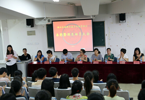 为了教育学生以诚信为本,用实际行动践行文明考试,2014年6月11日管理系在阶梯教室召开期末诚信考试动员大会。出席本次会议的领导和教师有:管理学院院长、管理系主任刘卫星教授,管理系党总支副书记孙金动老师,工商企业管理、酒店管理、旅游管理、人力资源管理专业教研室主任以及各位班主任老师。