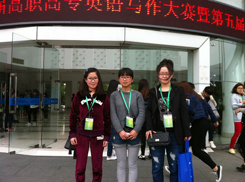 2014年4月25日,浙江省第五届高职高专英语写作大赛暨第五届全国高职高专英语写作大赛浙江赛区选拔赛在浙江经济职业技术学院举行,来自全省46所高职高专院校的126位选手参加了比赛。其中公共英语组89人,专业英语组35人,参赛院校与人数均创历史新高。我院选手经过努力,取得了优异的成绩。其中12会计1班的王晓晓同学获得公共英语组一等奖(指导教师:公共外语教研室杨成青);13国贸4班的沈爱芬同学获得公共英语组一等奖(指导教师:公共外语教研室赵佳音);12商务英语1班的姚丽虹获得专业英语组三等奖(指导教师:商务英语教研室俞乔)。