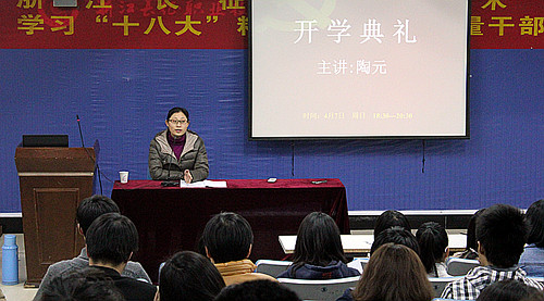 在学院党委的号召下,4月7日晚,学院在1117举行了第22期业余党校开学典礼。公寓团总支、各系团总支等220余名入党积极分子参加了本次开学典礼。典礼在铿锵有力、激动人心的义勇军进行曲中拉开序幕。