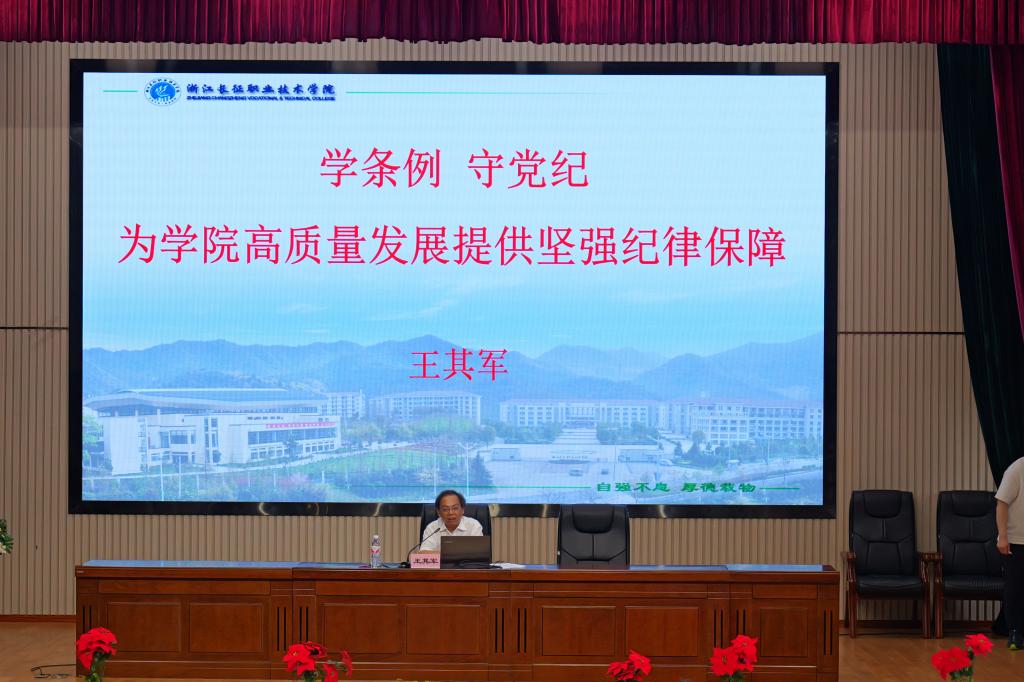 最后,为全面深入推进党纪学习教育,进一步提升广大教职工的纪律意识,王其军作了题为《学条例、守党纪,为学院高质量发展提供坚强纪律保障》的专题党课。围绕着党纪学习教育的时代背景,怎样遵守与践行《中国共产党纪律处分条例》,怎样发挥党组织和党员领导干部的示范引领作用,怎样持续推进党纪学习教育,助力学校高质量发展等五个方面,王书记强调党纪学习教育是一项持久而艰巨的任务,需要每一位党员同志持之以恒地学习、内化与践行。要以党支部书记为依托,推动党纪学习教育向基层延伸,党员领导干部要率先垂范,全校上下共同参与,形成浓厚的学习氛围。同时,要建立健全长效机制,深化党纪学习教育与学校中心工作的深度融合,不断推动学校各项事业的发展。