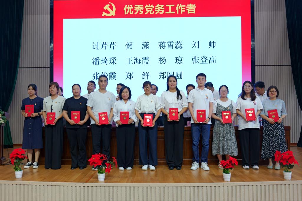 会议在庄严的国歌声中拉开帷幕。首先,由杜宝山宣读《关于表彰2023年度先进基层党组织、优秀共产党员、优秀党务工作者的决定》,授予人文与教育学院学生党支部等6个基层党组织“先进基层党组织”荣誉称号, 授予陈海飞等27位同志“优秀共产党员”荣誉称号,授予过芹芹等11位同志“优秀党务工作者”荣誉称号。 在热烈的掌声中,校领导向受表彰的先进基层党组织代表和获奖个人颁奖。颁奖结束后,管理学院学工办主任潘琦琛作为受表彰人员代表作了交流发言。