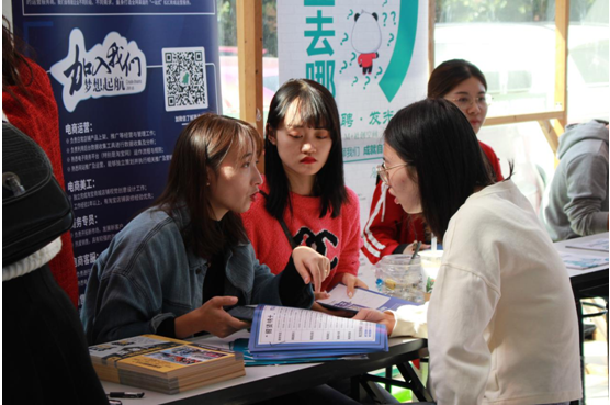 大学时光飞逝,2017级的学生转眼间又到了离校实习阶段。为了丰富同学们的社会实践经验,也为我校毕业生跟岗实习和就业提供更加全面有效的服务,商务系与应用语言系于2019年10月31号下午在行政楼大厅共同举办了2020届毕业生跟岗实习招聘会。