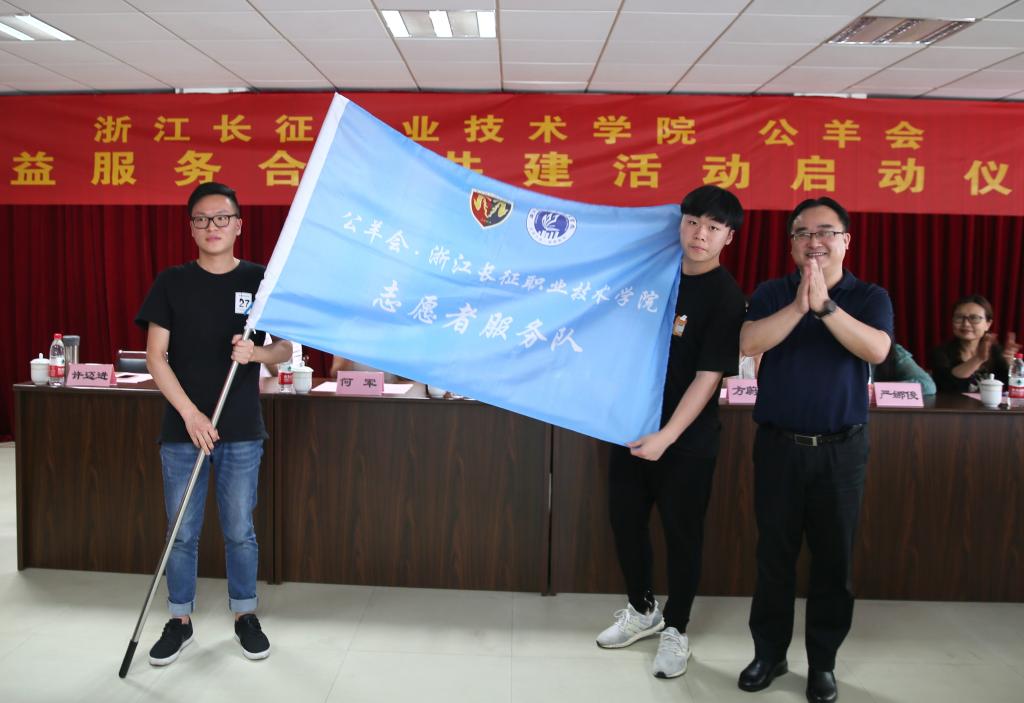 中共下城区委常委、统战部部长黄飞为“公羊会——日韩欧美福利视频_黑人巨大人精品欧美三区_欧美成人另类人妖_欧美在线精品一区二区三区_欧美一区二区三区性视频_日韩精品欧美视频_性欧美极品xxxx欧美一区二区志愿者服务队”授旗。
